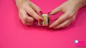 Uma caixinha acrílica pode virar uma lembrancinha super elegante! Enchi com balinhas e fechei com fitas branca e dourada, criando um laço removível super prático. Para finalizar, colei uma florzinha de EVA com tule, trazendo um ar romântico e delicado. Uma ideia rápida, charmosa e perfeita para arrasar na decoração! ✨🌸