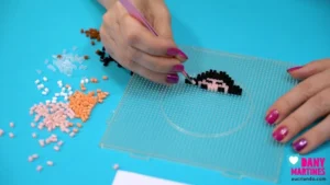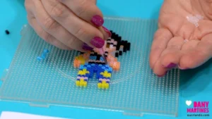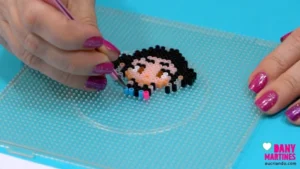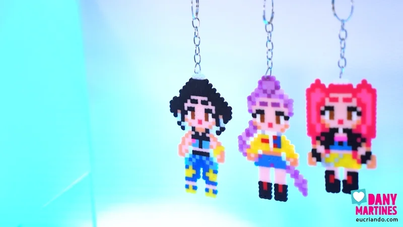 Arte que relaxa e encanta! 💖 Montei a Zoey, líder de Huntrix, usando beads coloridos na pegboard. Pecinha por pecinha, a personagem ganhou forma e personalidade. Depois de derreter com cuidado e unir tudo, virou um chaveiro incrível. Resultado? Um acessório estiloso e cheio de atitude! 🎶🔥