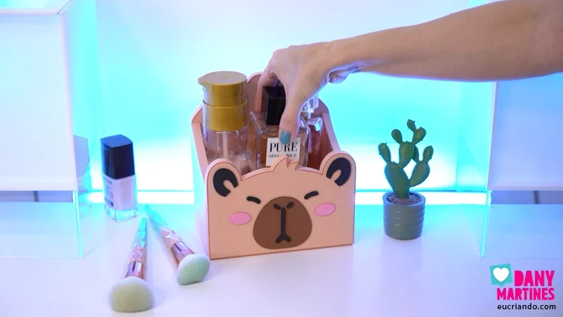 Organizar nunca foi tão fofo! 🦫💖 Transformei papelão e EVA em uma capivarinha cheia de charme para deixar a mesa linda e funcional. O processo é simples, reforçado e com acabamento caprichado, perfeito até para iniciantes. Ideal para cremes, perfumes ou o que você quiser organizar. Resultado? Um cantinho prático, organizado e simplesmente apaixonante! ✨🧴