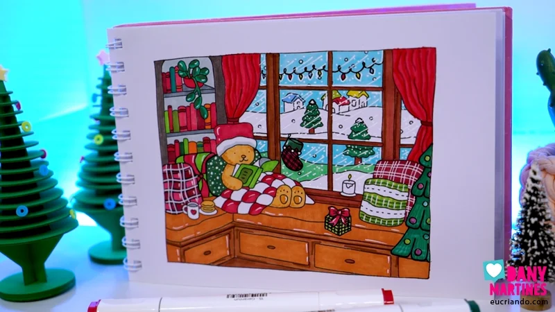 Uma pintura cheia de clima natalino e detalhes mágicos! ❄️✨ Antes de colorir, adiciono novos elementos com lapiseira para deixar a cena ainda mais aconchegante. Depois vou preenchendo tudo com tons quentes, vermelhos, verdes e texturas que transformam o desenho. Camadas, brilhos, contornos e neve completam o clima. O resultado final é tão natalino que dá até vontade de vestir um suéter! 🎅💚