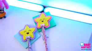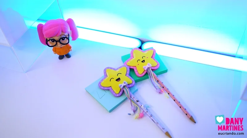 Essa estrelinha veio pra brilhar no topo do seu lápis! ⭐💜 Com duas camadas de EVA, rostinho fofo e brilhinhos feitos com marcador, ela fica ainda mais encantadora com as bolinhas coloridas que fazem até barulhinho. O acabamento com lacinho candy color deixa tudo mágico. Uma ponteira simples, rápida e super divertida de fazer! ✨🎀