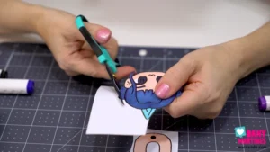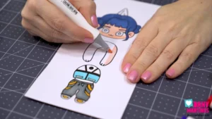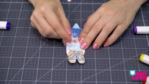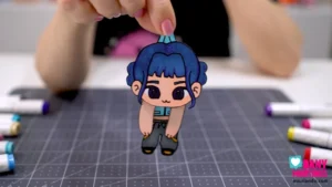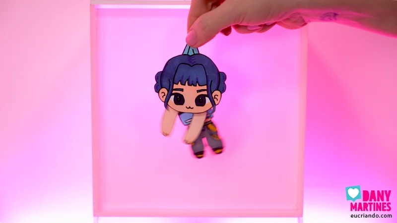 E agora é a vez da Zoey! 💙🎶 Pintei o cabelo azul dela e cada parte da roupa com muito capricho. Depois de recortar e montar, ela fica perfeita como penduradinha articulada, cheia de movimento. Uma Guerreira do K-Pop com muito estilo e atitude! ⚡💫
